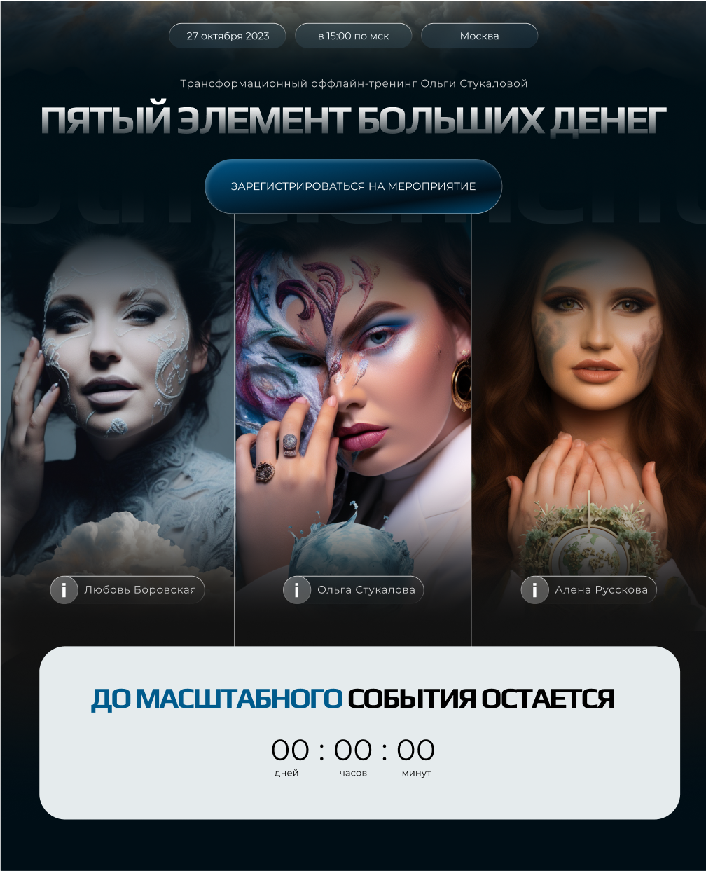 Task: Create an invitation/sales website for an offline conference in the field of launching online products. The main concept involves bringing together three elements: speakers, with a focus on exploring human relationships from different perspectives.